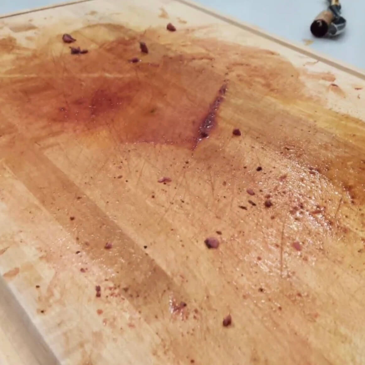 These boards require constant maintenance to keep in good condition and are made of naturally porous materials which can be breeding grounds for bacteria, mold and other germs. Bamboo can also be super harsh on knives.